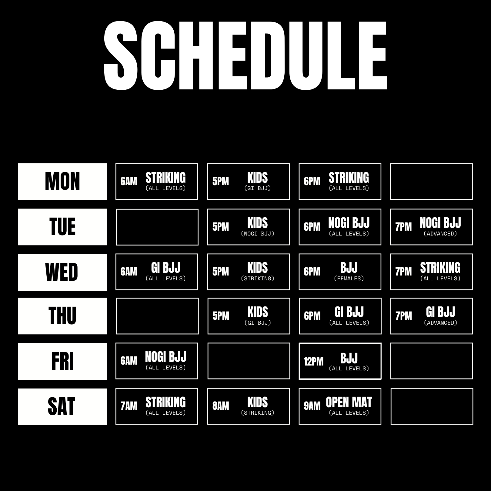 The Adult Program offers classes 6 days a week and is open to all levels from novice to advanced.
